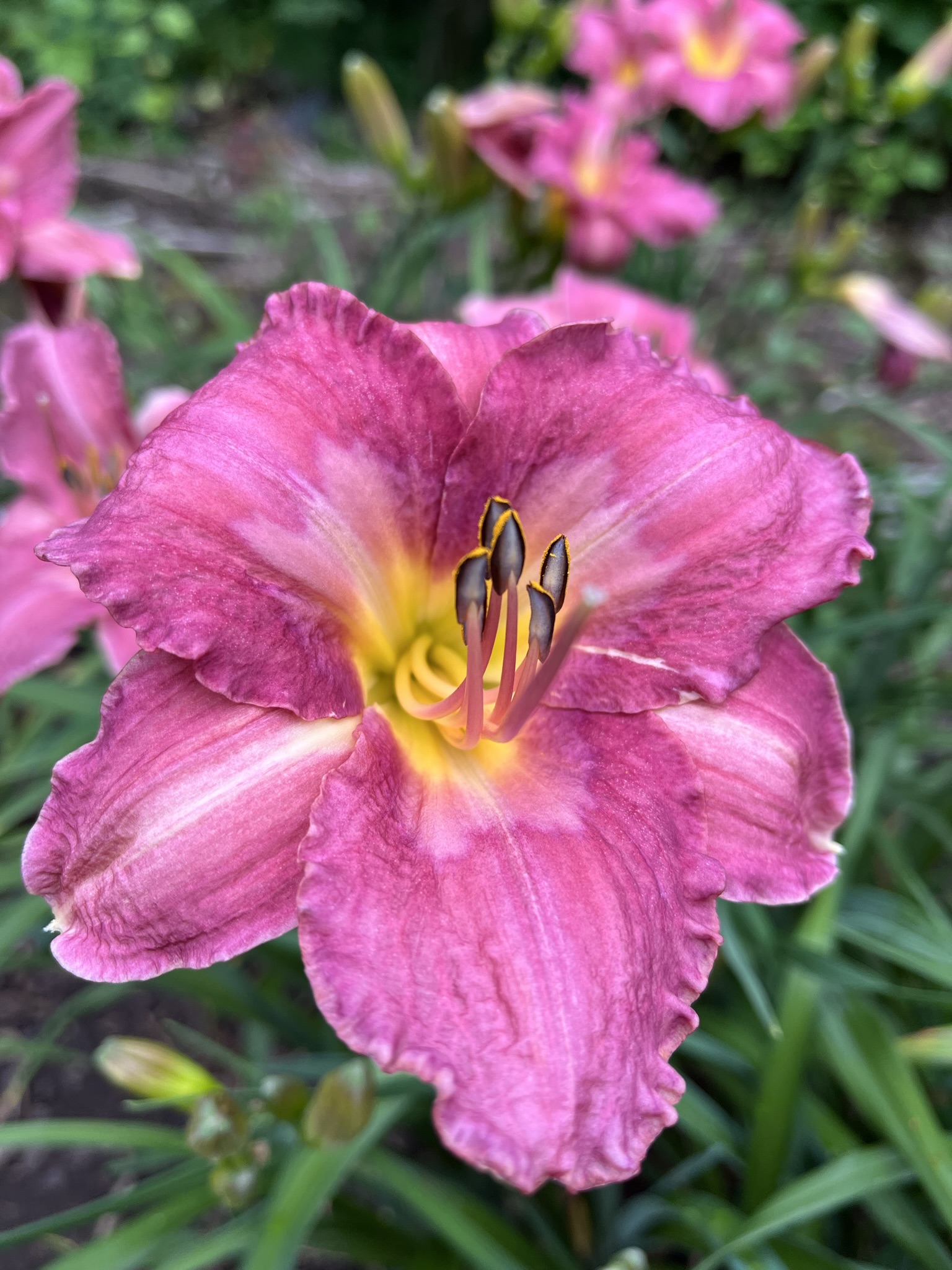 Mauve lavender with chalky lavender band. Semi-evergreen foliage. Fragrant. Nice saturation in warmer weather, like shown here.