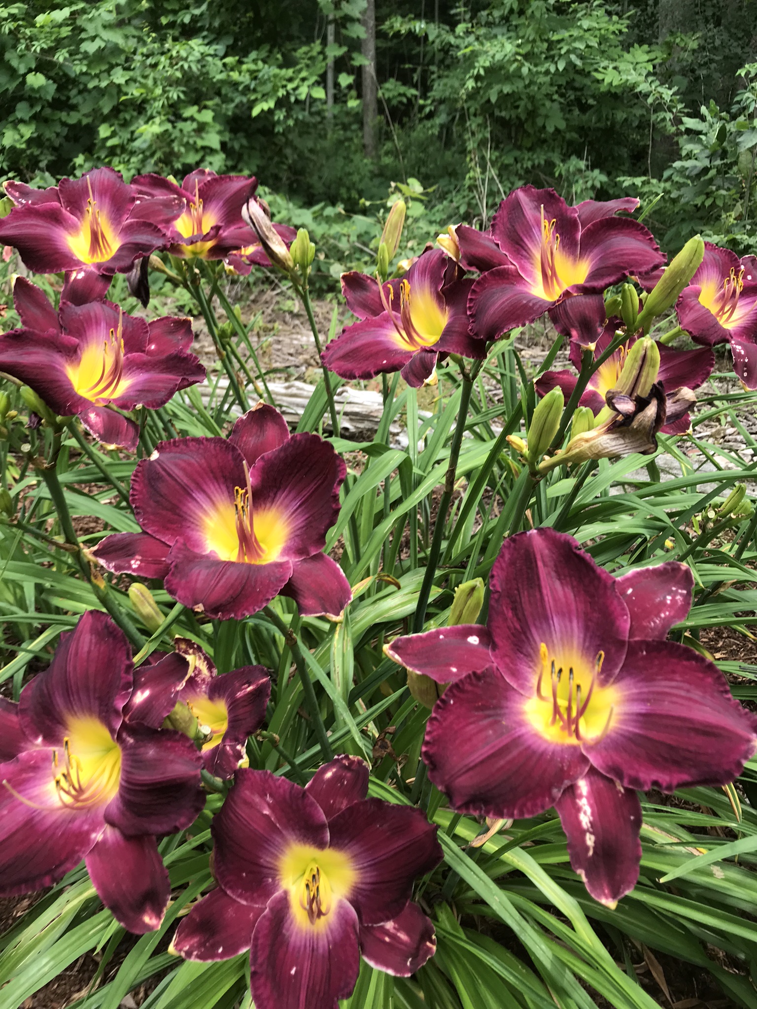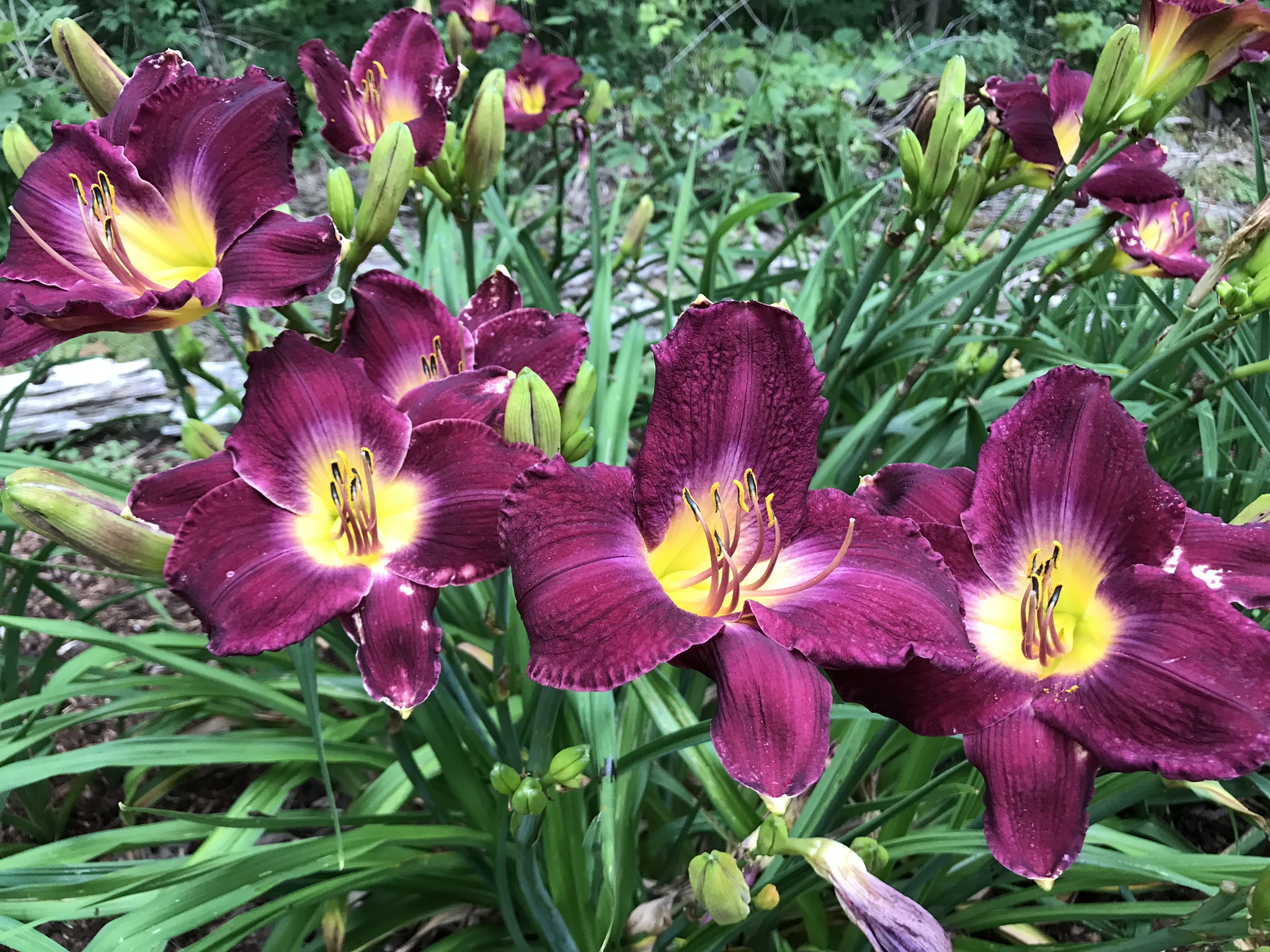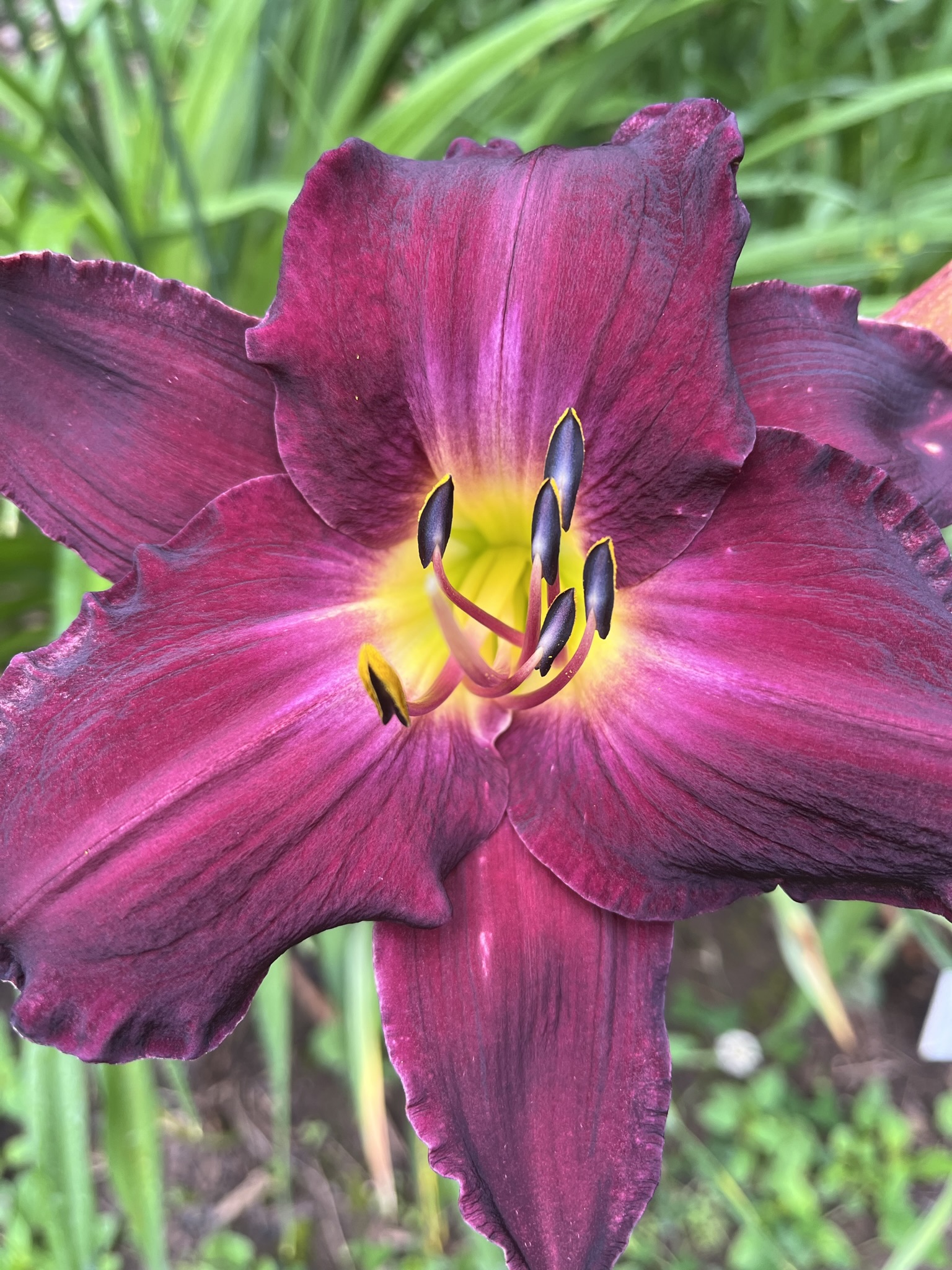 Deep purple self. Sometimes, a light silver hue can be detected on the petals, giving it a distinct touch. Produces big growths and sturdy scapes. Nice presentation. A garden favourite. Fast grower.