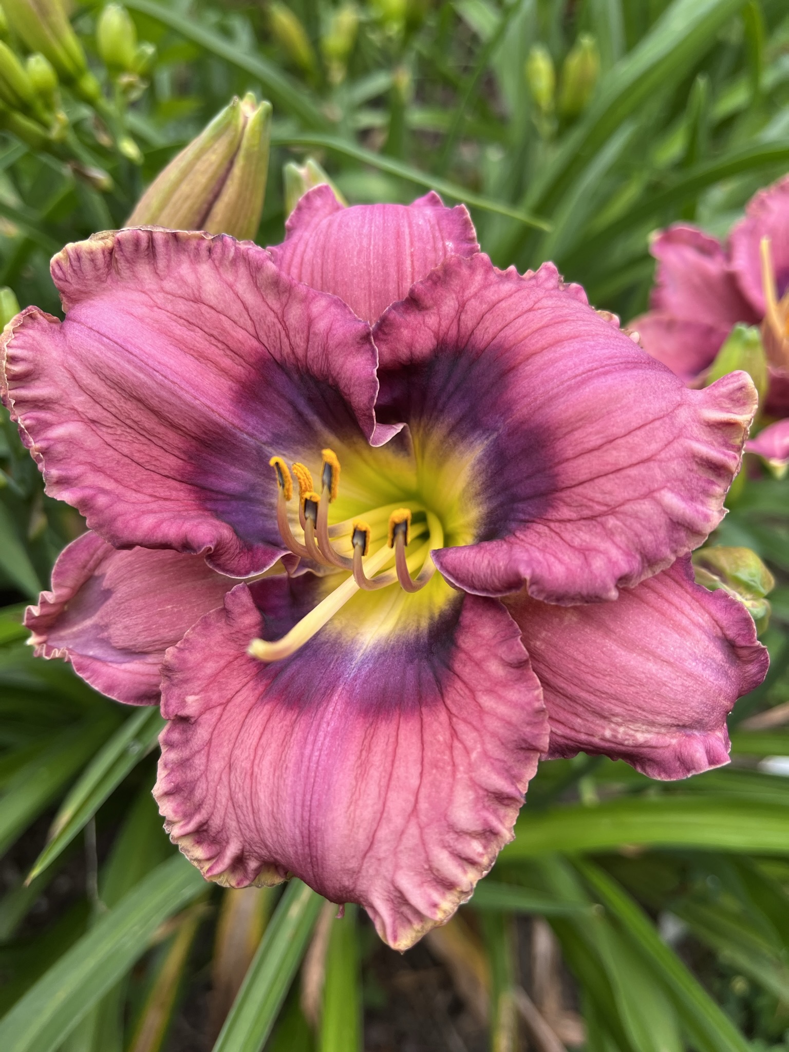 Lavender, rose, blue violet eye and edge. A stunning colour combination and performer. Semi-evergreen foliage. The perfect daylily. Seriously.