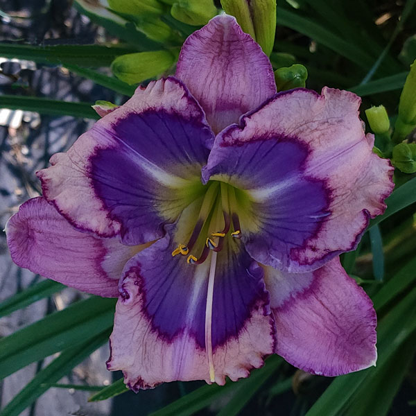 From Gossard: “Flowers are mauve with a large, patterned bluish eye and matching tricolor edge and green throat. A very rare daylily being dormant. Probably worth twice what I’m charging.” Dormant. 18-24 buds. Pix from Gossard.