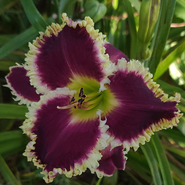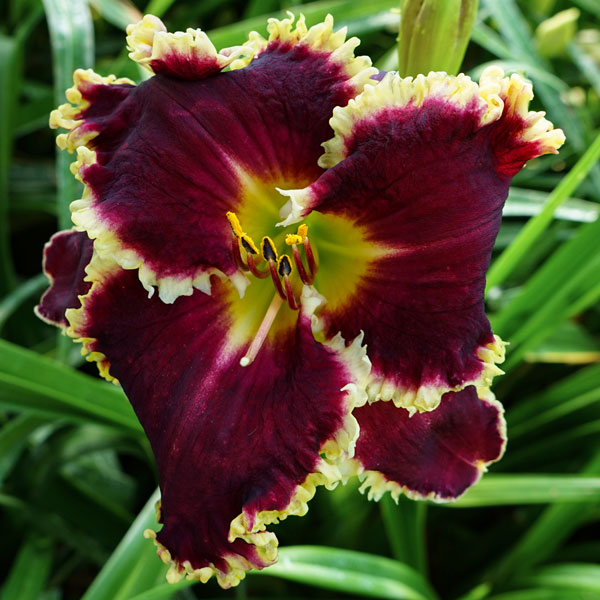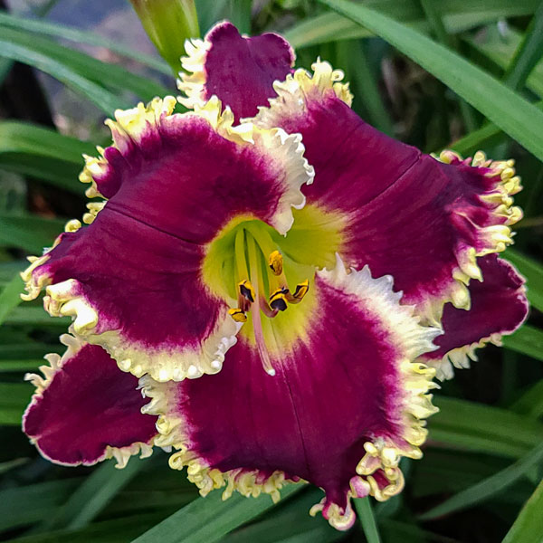 From Gossard: “Flowers are magenta red with a big white shark’s tooth edge and a very green throat. Been slow to increase and expect it to sell out and won’t have any for years to sell. One of the best toothy ones introduced. A must have if your breeding round toothy daylilies. It is an outstanding garden daylily as well….$500 Single Fans only. Extremely Limited Sold Out.” Dormant. 22 buds. Pix from Gossard.