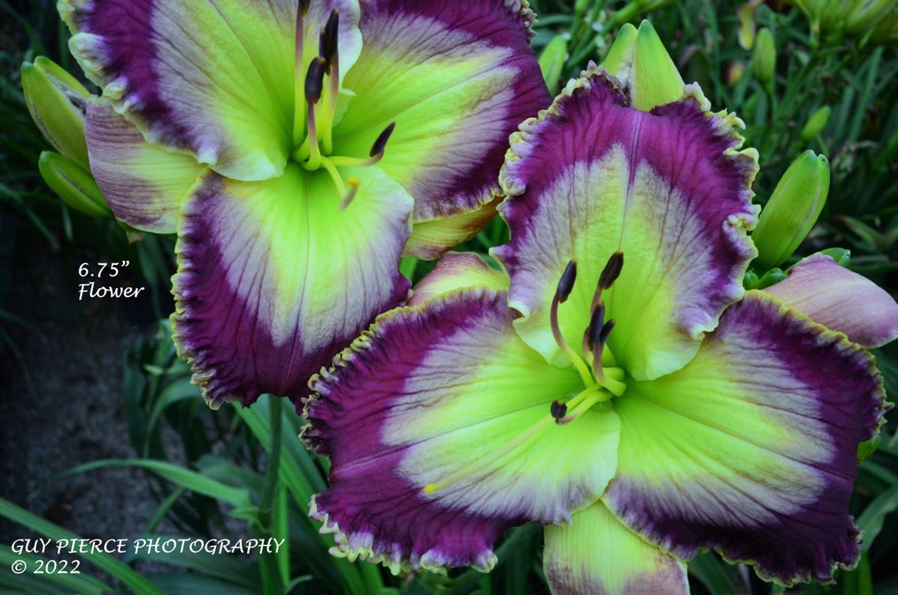 ONLY TWO SINGLE FANS AVAILABLE AT THIS TIME. According to Pierce: “Reminds me of the Klondike bar commercial every time I see it. Cool man – Cool! Again, like nothing else with our thick/tall scapes, cleanest clear colors, flat perfect bloom. Rich purple with large bright silver watermark, infused with a glowing green extended throat, bubbly silver/Bluish edging.” Semi-evergreen. Pix from hybridizer.